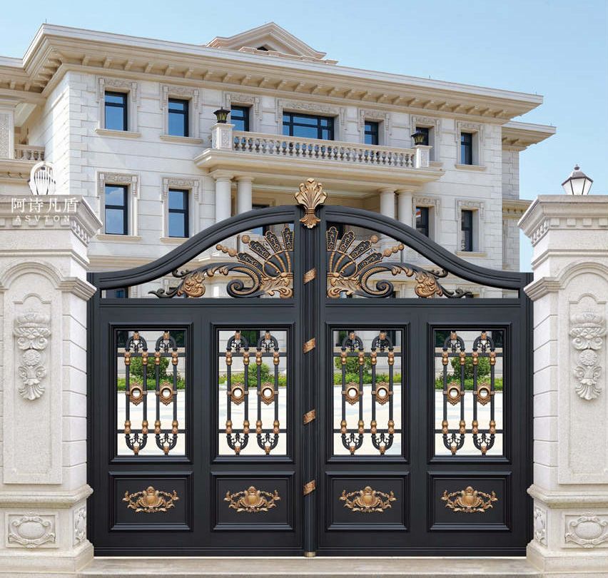 Mô tả: Cổng 6 cánh rộng, thiết kế đỉnh vòm cung Châu Âu nhưng phần chân cổng lại sử dụng các họa tiết hình đồng tiền/chữ Phúc tròn cách điệu. Tạo sự giao thoa văn hóa ấn tượng.